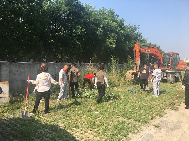 因?yàn)榻煌ㄙe館院內(nèi)是一個廢棄的停車場,所以需要清理的垃圾較多?;顒蝇F(xiàn)場,參加義務(wù)勞動的志愿者們拿著掃帚、耙子、鐵锨等工具在院內(nèi)開始清理工作,雖然天氣炎熱,但每一位志愿者都不怕臟、不怕累,擼起袖子加油干,認(rèn)真對停車場院內(nèi)生活垃圾、衛(wèi)生死角、雜草及白色污染等進(jìn)行了整治清理,并聯(lián)系了清運(yùn)汽車,對院內(nèi)的亂堆的雜物、建筑垃圾進(jìn)行了清運(yùn)。